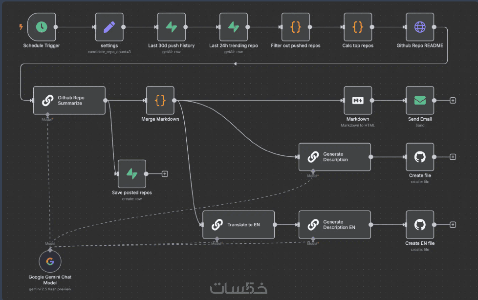 التصميم: سير عمل ذكي (Workflow) شامل عبر منصة n8n، مع واجهة مستخدم مخصصة وهوية بصرية واضحة (تصميم UI/UX احترافي).