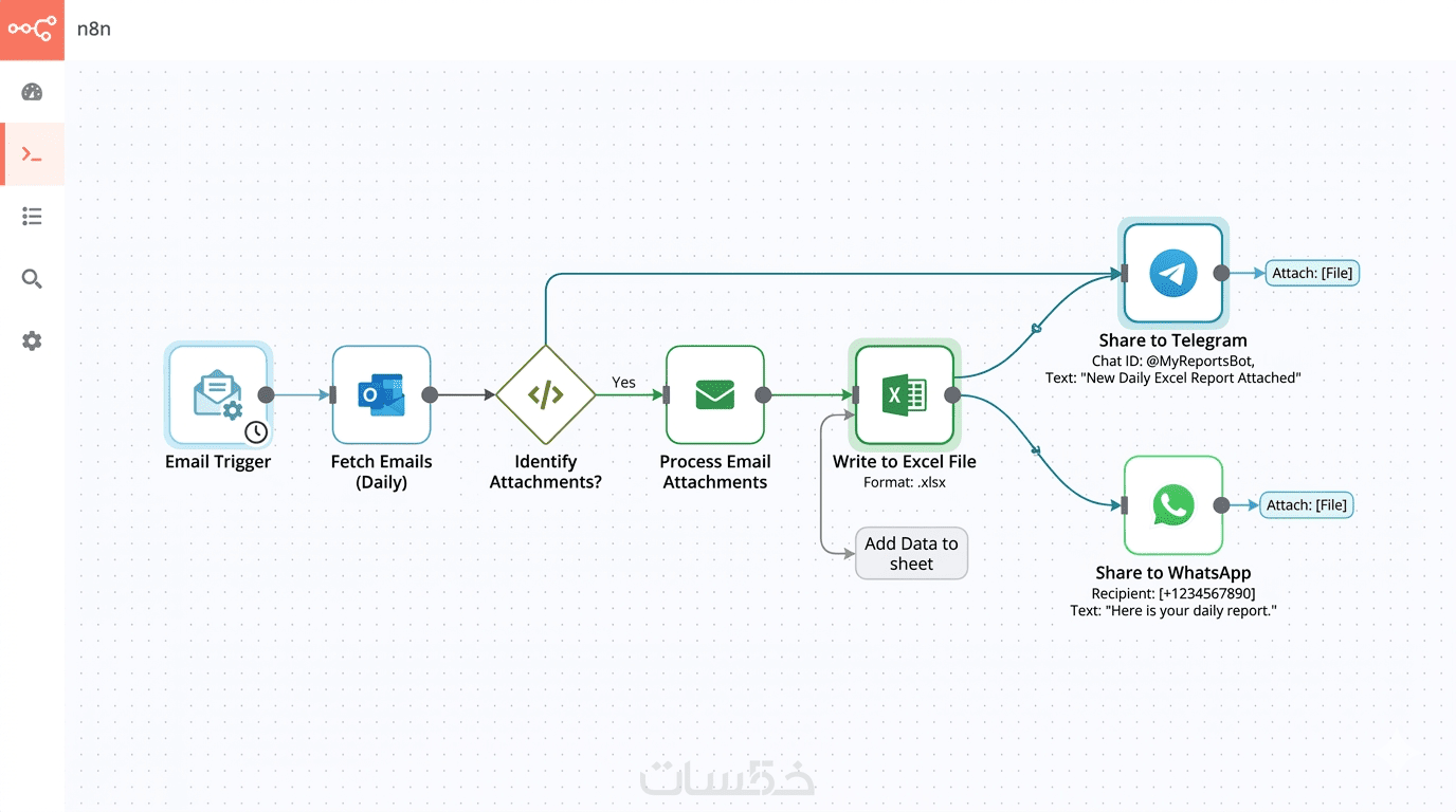 ربط تطبيقات شائعة: Google Sheets، Telegram، Email، Notion (وغيرها حسب الحاجة).