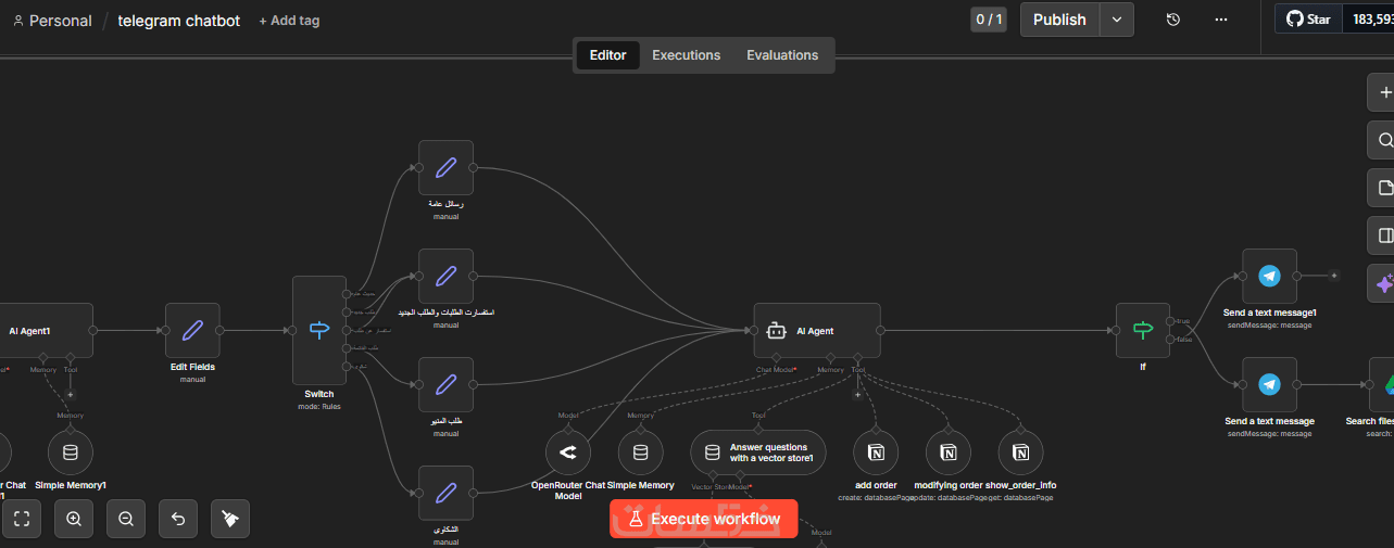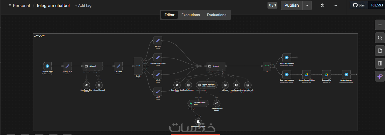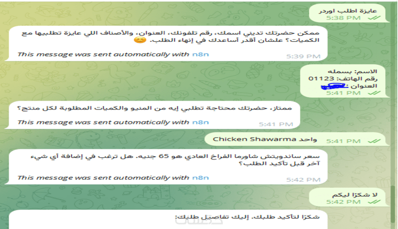 أقدّم لك نظام شات بوت احترافي يعمل بشكل تلقائي لإدارة خدمة العملاء والمبيعات على مدار 24/7 باستخدام أداة الأتمتة n8n مع دمج الذكاء الاصطناعي