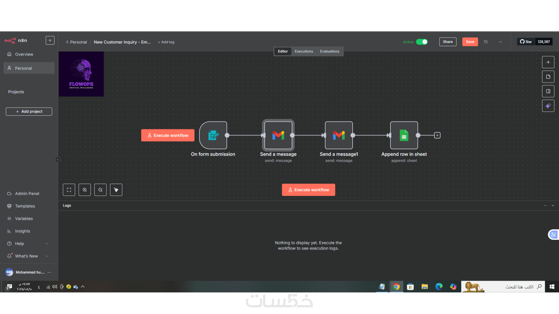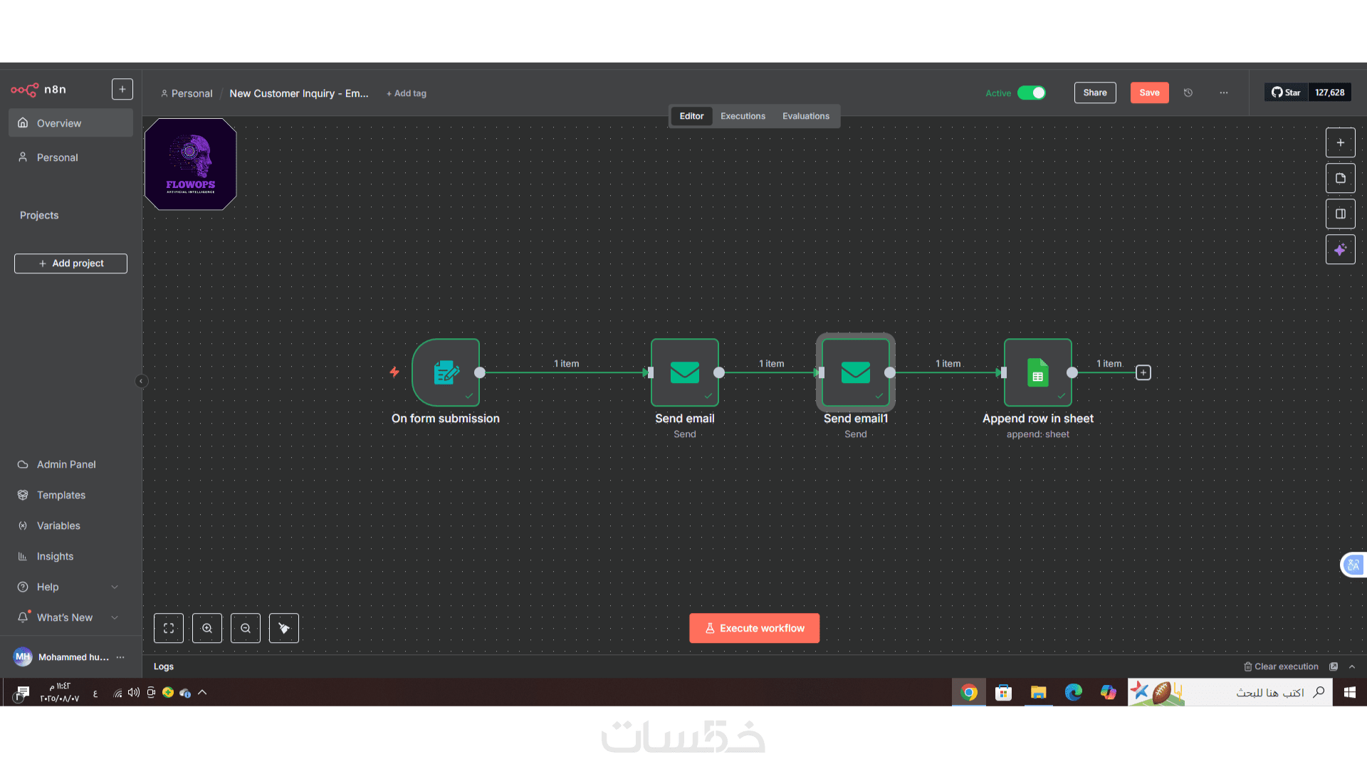 أنا هنا لمساعدتك. كخبير متخصص في منصة n8n، سأقوم ببناء نظام أتمتة مخصص لعملك، يعمل 24 ساعة في اليوم، 7 أيام في الأسبوع، دون أي تدخل منك.