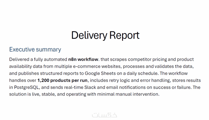 6. تسليم ملف n8n Workflow + ملف JSON قابل للتعديل