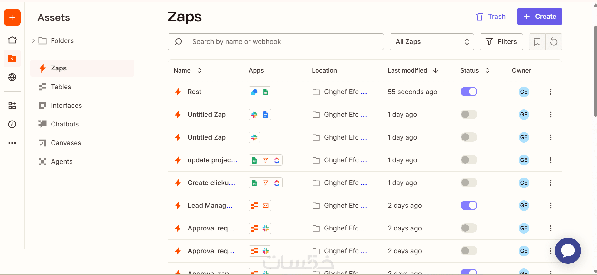 أعمل مع أدوات مثل Gmail، وGoogle Sheets، وNotion، وClickUp، وSlack، والنماذج، والتكامل مع الذكاء الاصطناعي...