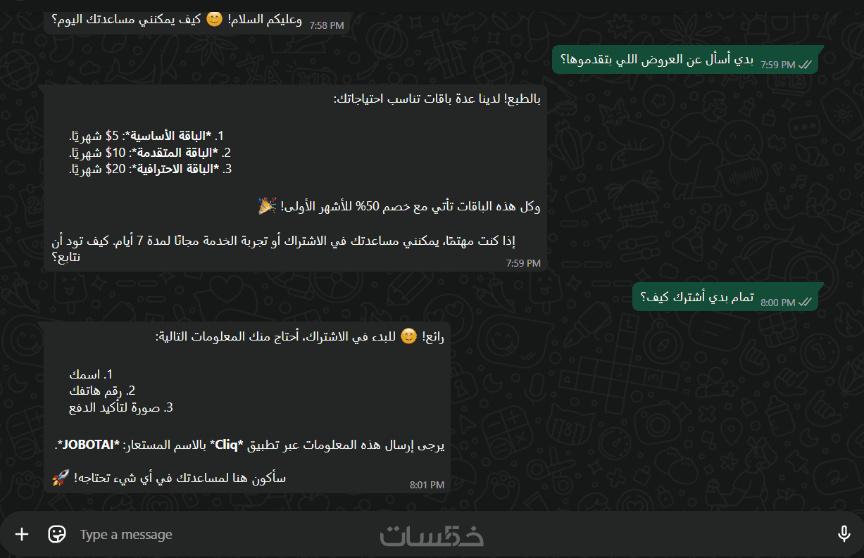 السلام عليكم، أنا متخصصة في حلول الأتمتة والذكاء الاصطناعي أبني أنظمة رد آلي وتدفقات عمل ذكية تهدف لأتمتة تواصلك مع عملائك بالكامل، لرفع كفاءة العمل وتوفير وقتك.