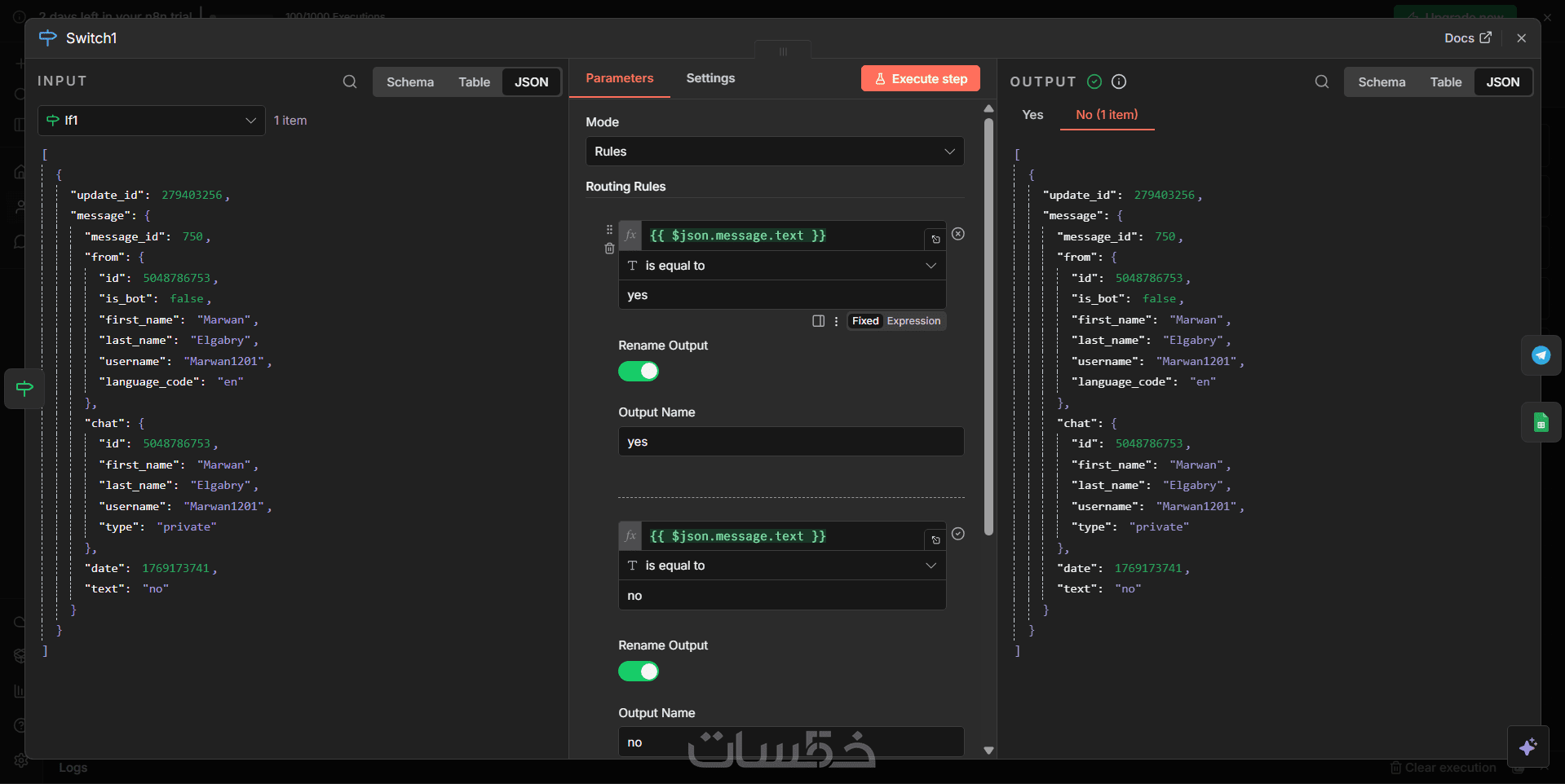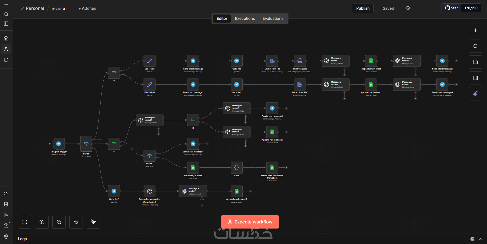 بناء سير عمل (Workflow): واحد احترافي على منصة n8n يربط بين تليجرام و Google Sheets.