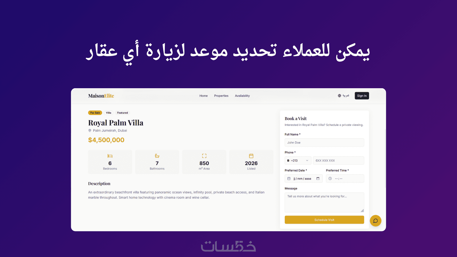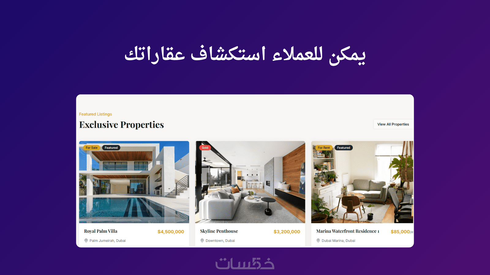 أقدّم لك نظامًا متكاملًا مخصصًا لوكالات العقار، ليس مجرد موقع إلكتروني، بل منظومة ذكية تساعدك على جذب العملاء، تنظيم العمل، وتقليل الجهد اليدوي.