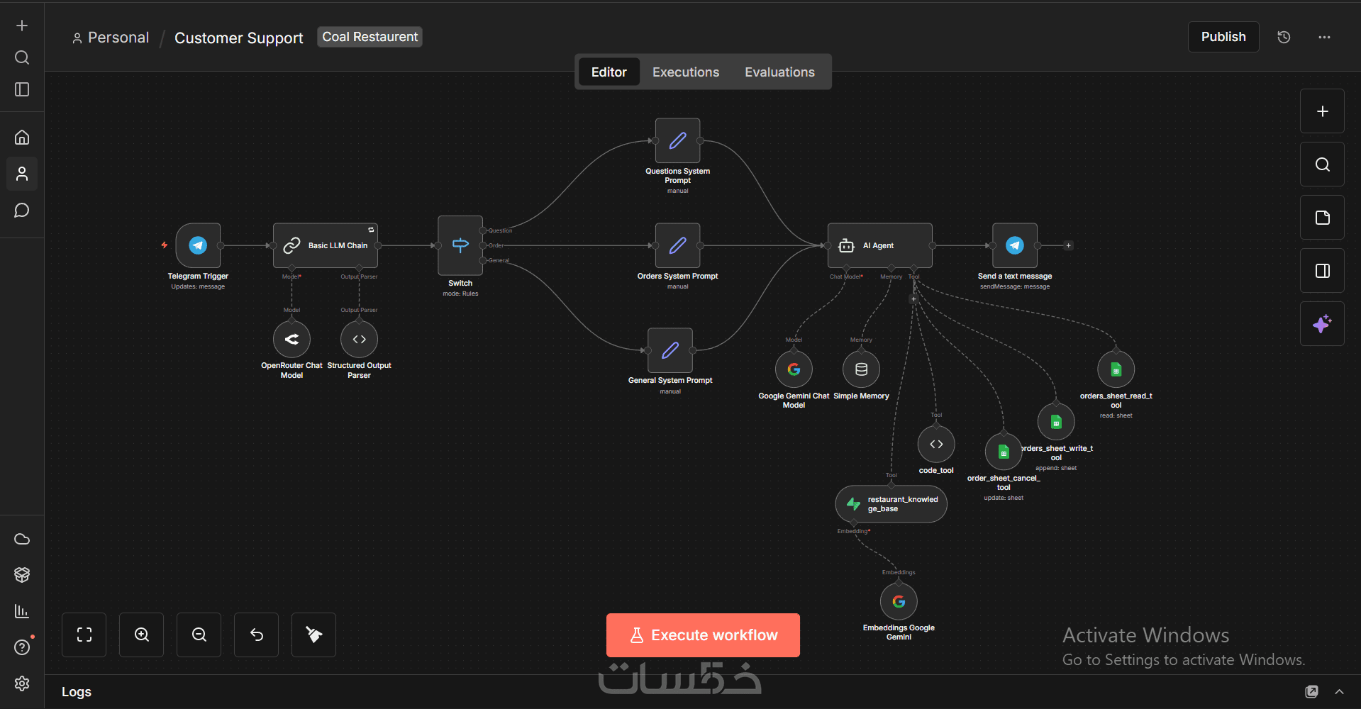 مساعده العميل في ربط الادوات المطلوبه داخل ال Workflow (مثل ربط الAPI ل OpenAI و Googlesheet)