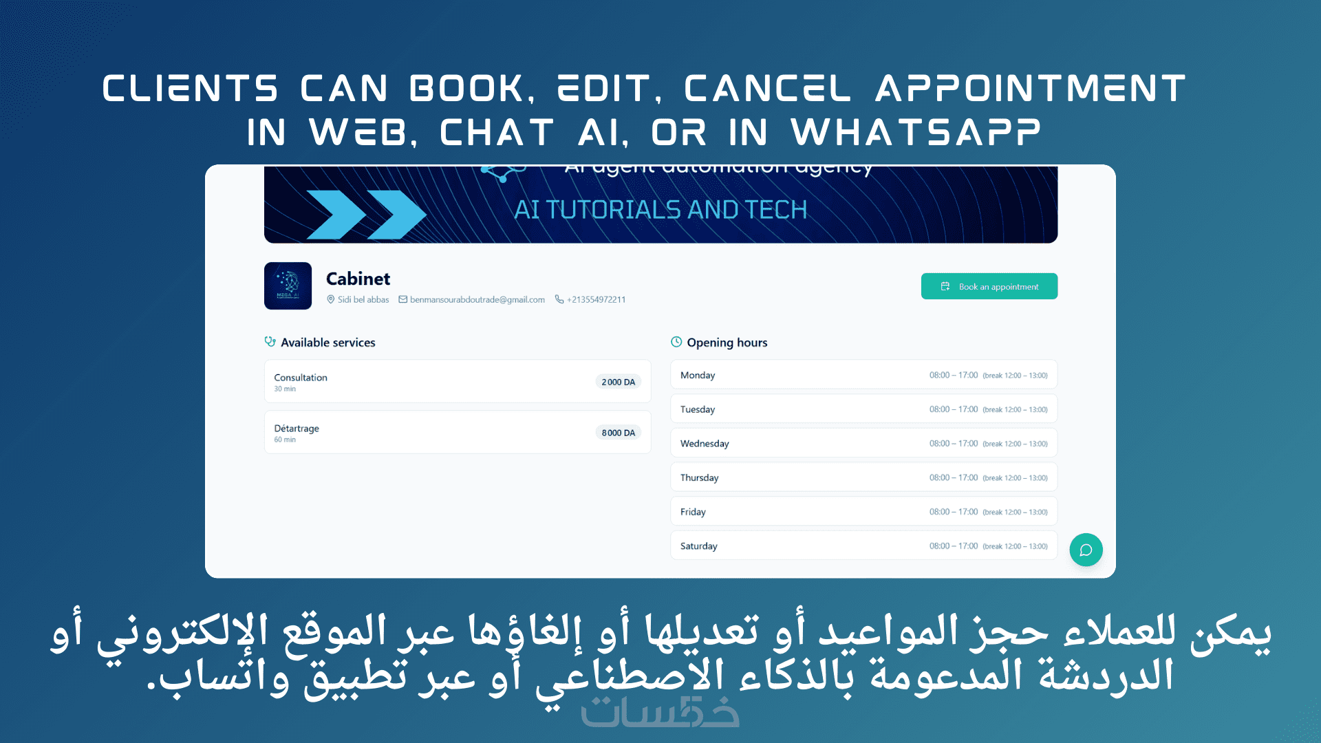لأنه يحول إدارة العيادة من عمل يدوي مرهق إلى نظام ذكي يعمل تلقائياً على مدار الساعة، مما يساعدك على التركيز على المرضى بدلاً من إدارة الفوضى.