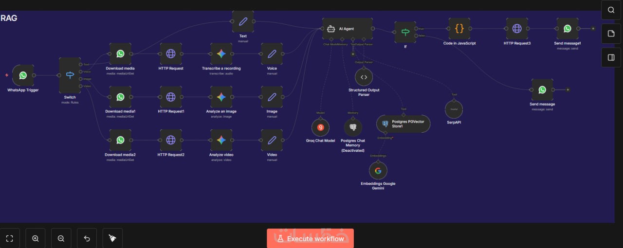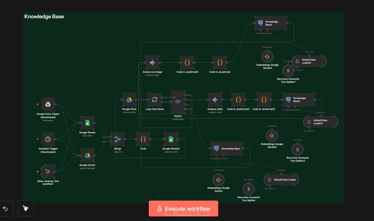 تصميم وتنفيذ Workflow كامل مطابق لطلبك مع ترتيب واضح للـ Nodes وسهولة التعديل لاحقًا.