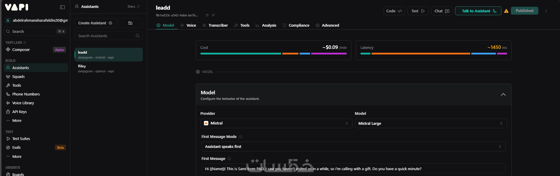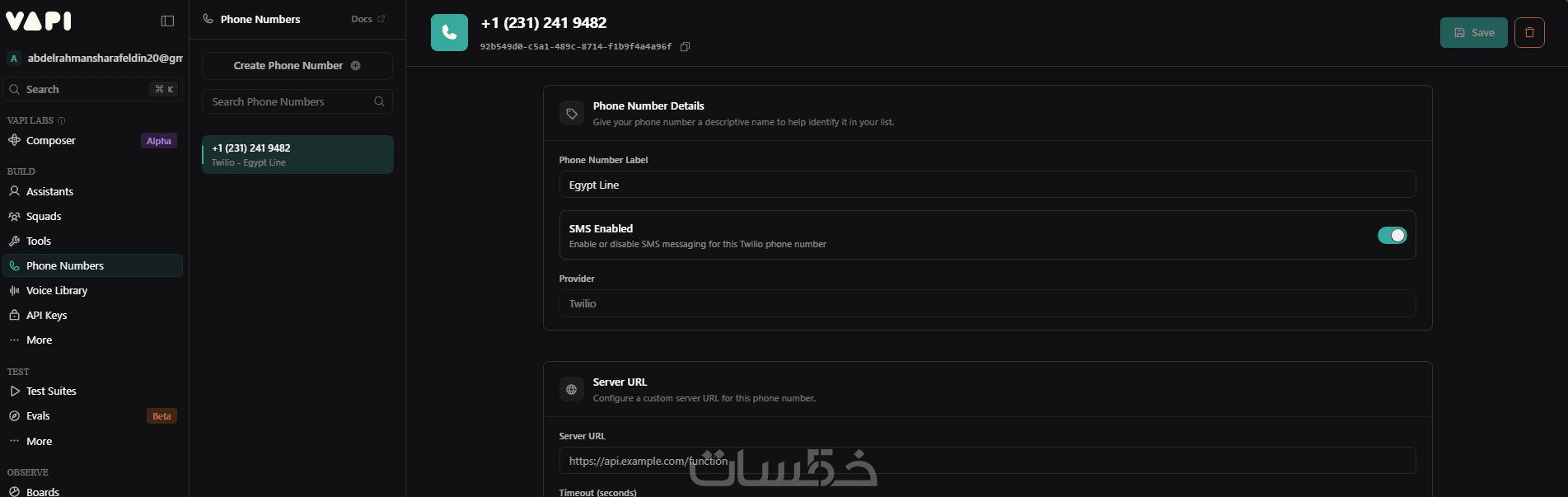 نظام اتصال ذكي لأتمتة الحجز مع العملاء صوتياً باستخدام Vapi وTwillio، مع ربط مباشر بـ Google Sheets لتنظيم البيانات.