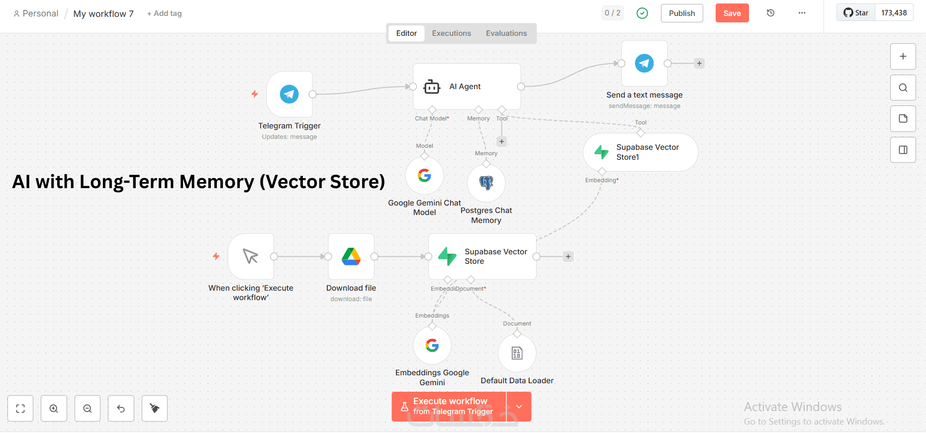 نظام الذاكره وال Vector Store (Supabase) : جعل البوت يقرا من ملفاتك الخاصه لتقديم ردود دقيقه