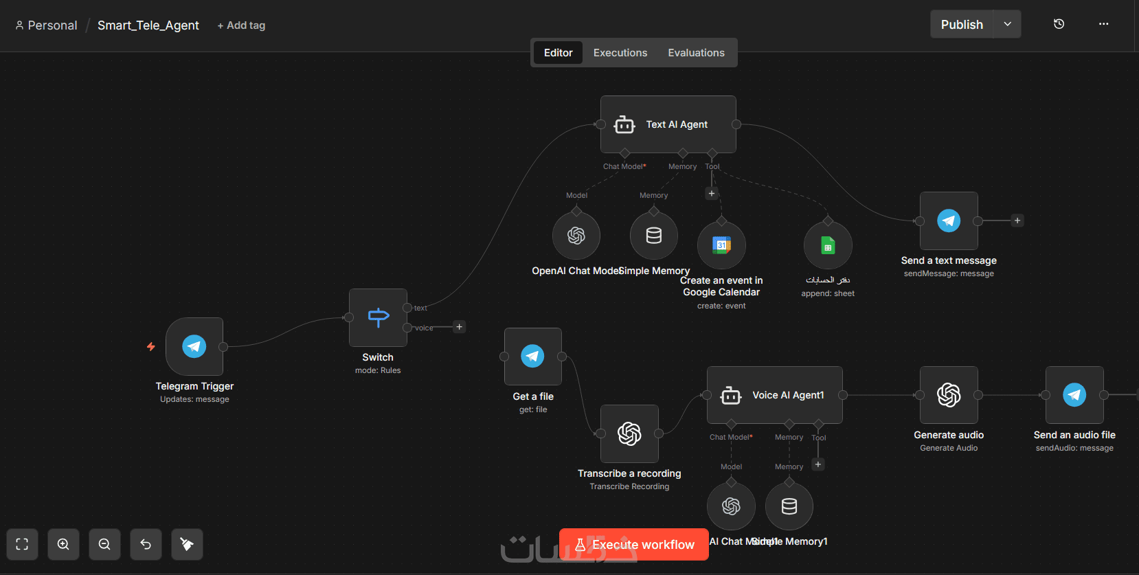 يمكنني تصميم Workflows ذكية تقوم بربط الأنظمة المختلفة مثل قواعد البيانات، APIs، أنظمة الذكاء الاصطناعي، والبريد الإلكتروني لتسهيل العمليات وتحسين الإنتاجية.