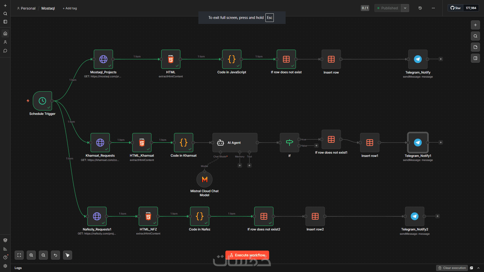 انقل أعمالك إلى المستوى الذكي ووفر وقتك الثمين عبر بناء مسارات عمل (Workflows) احترافية تربط تطبيقاتك المفضلة ببعضها البعض. باستخدام منصة n8n القوية، أقدم لك حلولاً تقنية متكاملة تضمن تدفق بياناتك بسلاسة ودقة متناهية، مما يغنيك عن الاشتراكات الشهرية الباهظة في المنصات الأخرى ويوفر لك تحكماً كاملاً في أتمتة عملياتك البرمجية والتجارية.