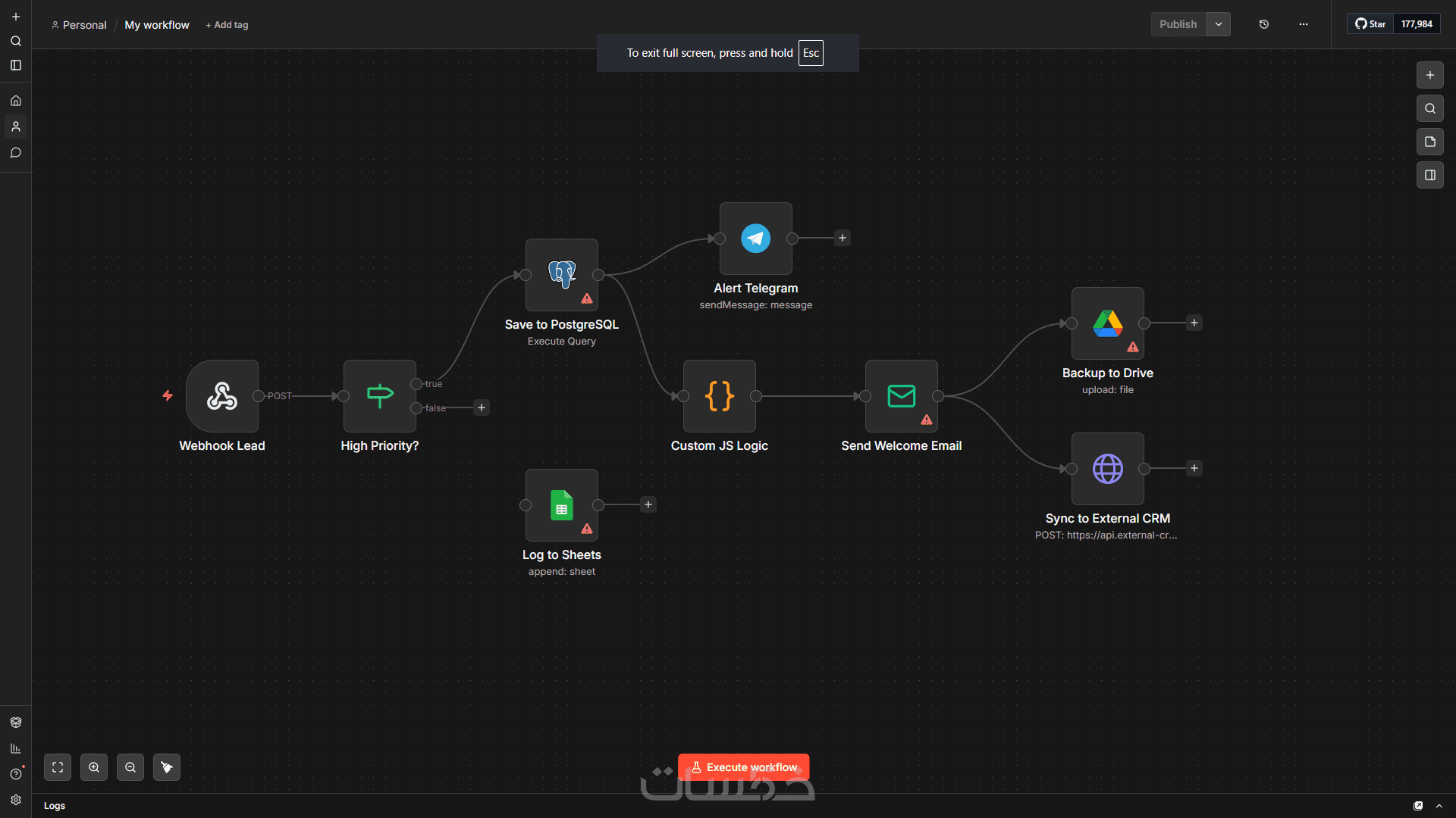 ملاحظة هامة: قيمة الخدمة الأساسية تشمل بناء سير عمل (Workflow) واحد فقط، بحد أقصى 20 عقدة (Node)، مما يضمن لك جودة تقنية عالية وأداءً مستقراً للمهام المتوسطة والمتقدمة.