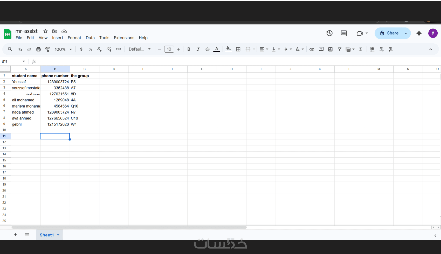 جمع بيانات الطالب (الاسم - رقم الهاتف - الجروب)