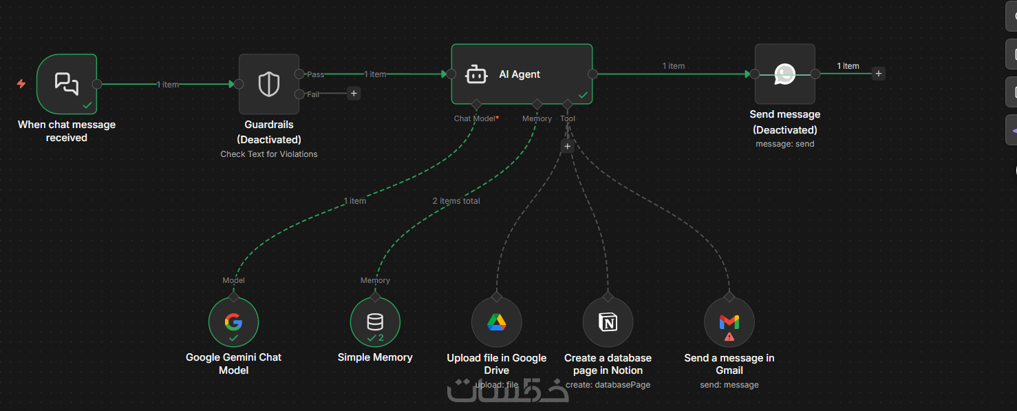 Workflow شاملة OpenAI API و Gmail اعداد جميع الأدوات مختلفة مثلا Notion و WhatsApp و Google Sheets