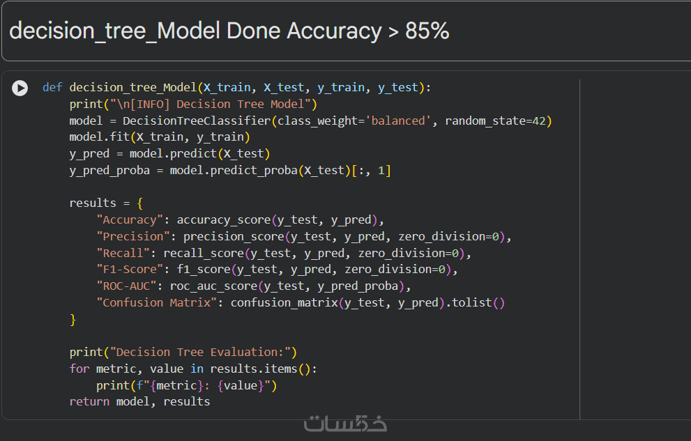 *تقييم الأداء باستخدام المقاييس المناسبة (Accuracy, Precision، وغيرها).