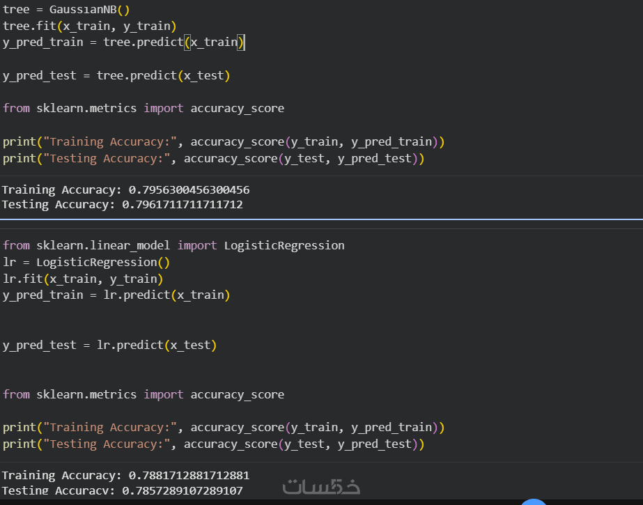 *اختيار النموذج المناسب (Regression أو Classification) حسب طبيعة البيانات.