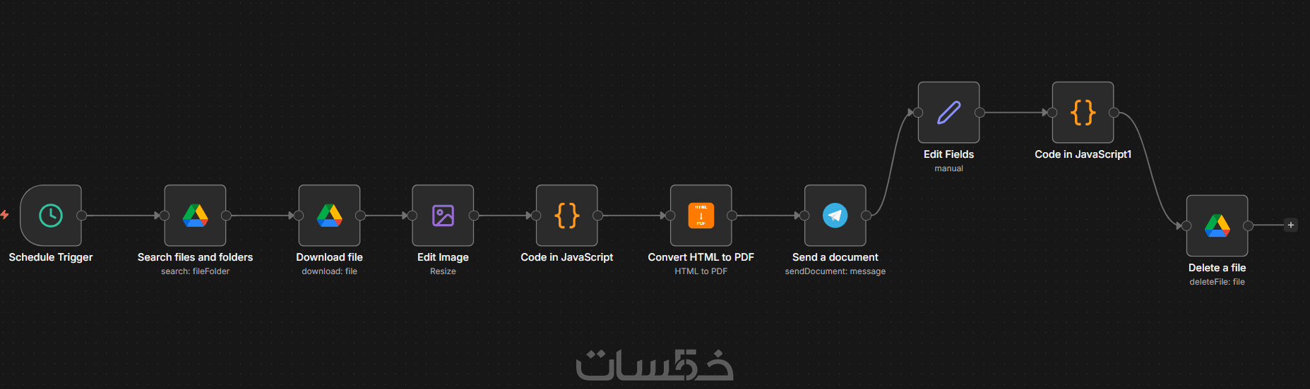 الملف البرمجي الكامل لجميع المسارات (Nodes) التي قمت ببنائها، جاهز للاستيراد بضغطة زر واحدة إلى بيئة n8n الخاصة بك.