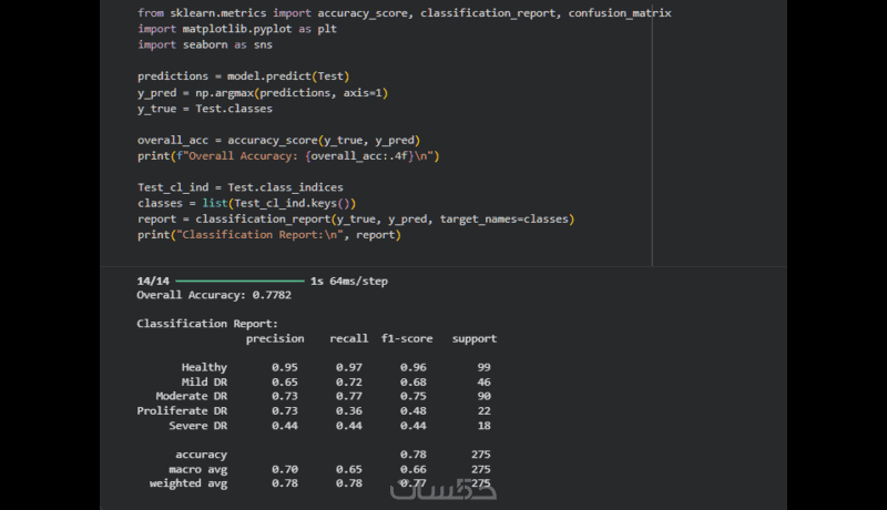شرح وتحليل النتائج: ملف نصي يشرح دقة النموذج، وكيفية قراءة الرسوم البيانية، وكيفية استخدام ملف النموذج في برنامجك.
