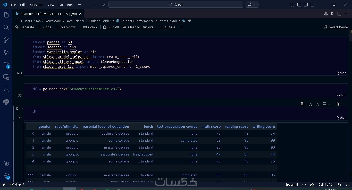 بناء النموذج: تدريب نموذج (Classification/Regression) على بيانات حتى 1000 صف.
