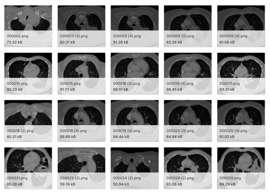 يتم تدريب نموذج ذكاء اصطناعي باستخدام هذه الصور بحجم بيانات من 500 صورة إلى 10000 ليتمكن من التمييز بين الحالات المختلفة وتقديم توقعات حول ما إذا كانت الصورة طبيعية أو تحتوي على مرض مثل أنواع سرطان الرئة بناءً على شكل وأنماط الصور.