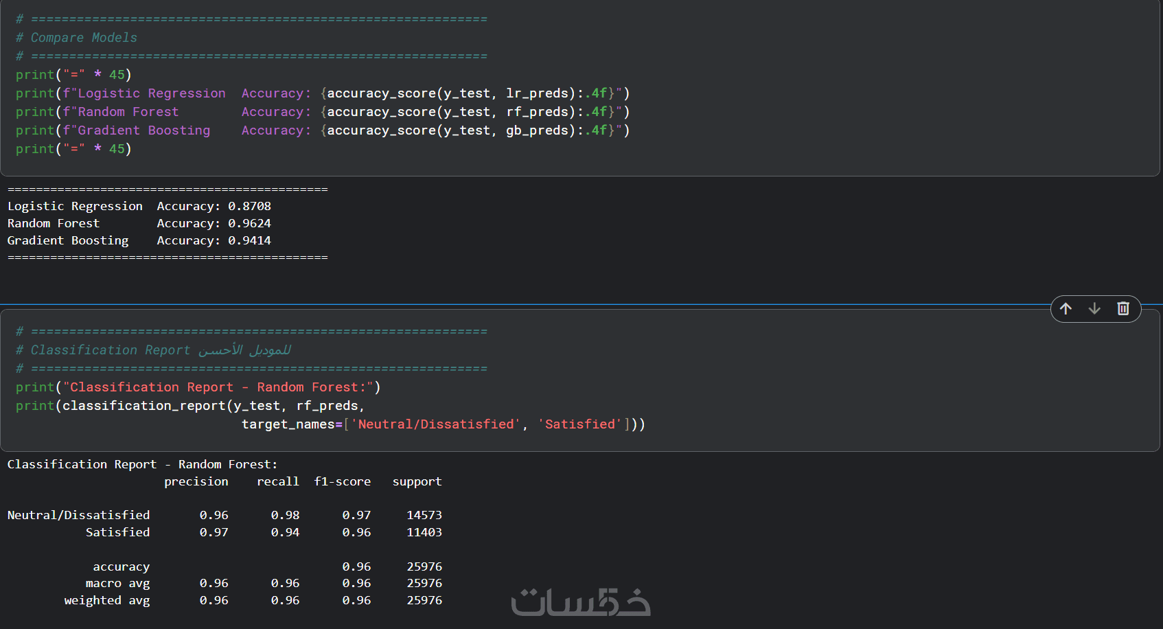 أرقام واضحة توضح كفاءة النموذج وقدرته على التنبؤ الصحيح