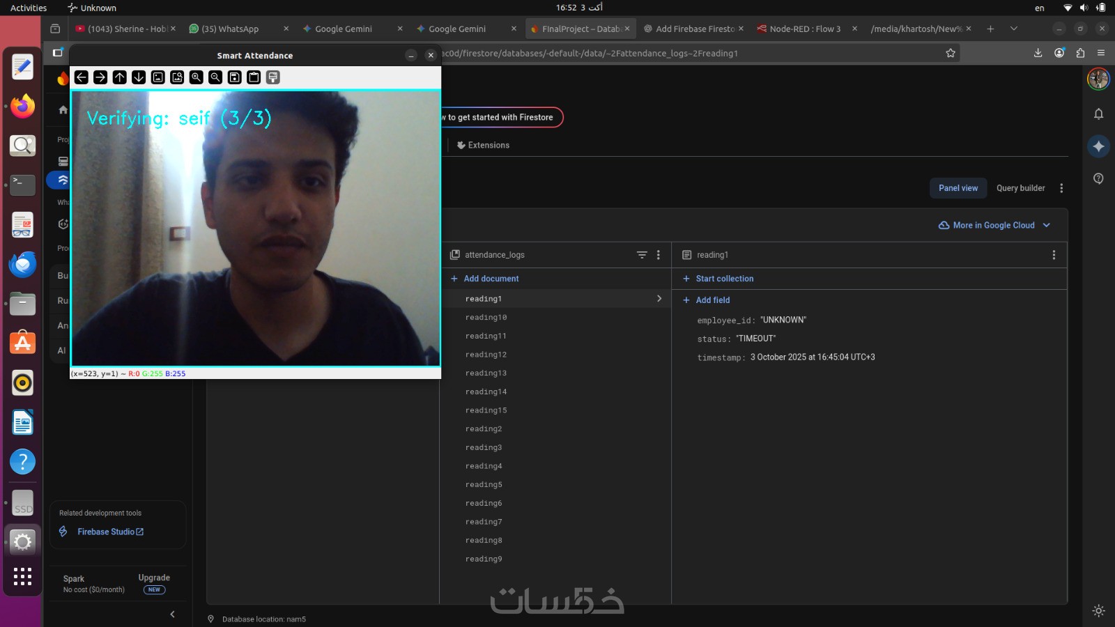 سأقوم بتطوير نظام Face Recognition قادر على التعرف على الأشخاص من خلال الكاميرا وتخزين بياناتهم تلقائياً في قاعدة بيانات Firebase السحابية.