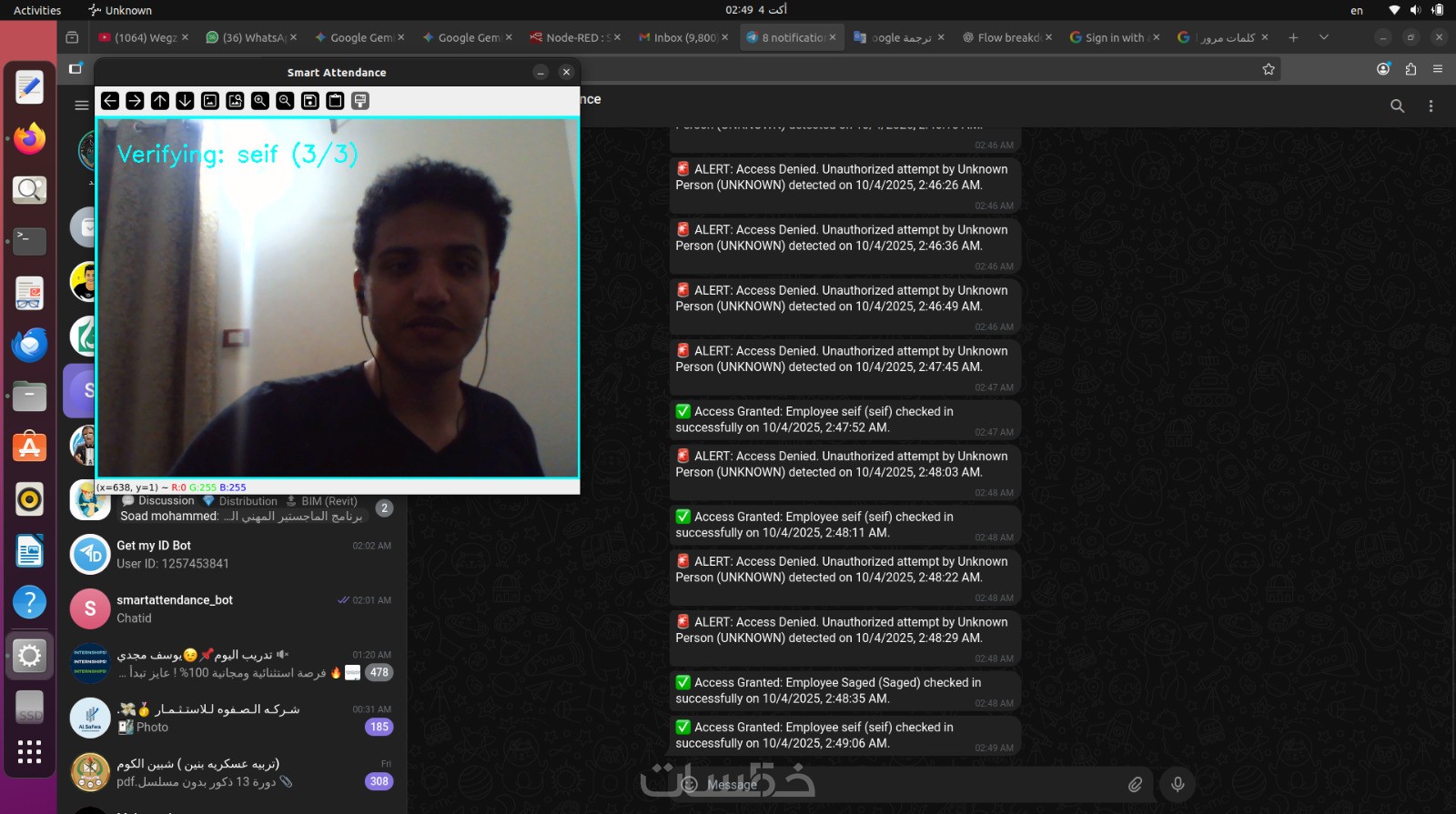نظام تنبيهات عند التعرف:إرسال إشعارات أو رسائل عند التعرف على الأشخاص (مثلاً عبر البريد أو تطبيق).