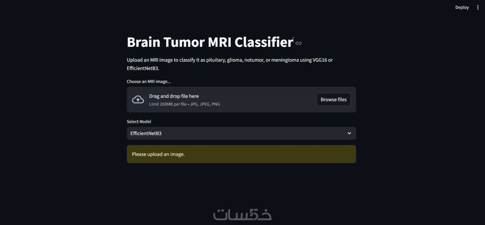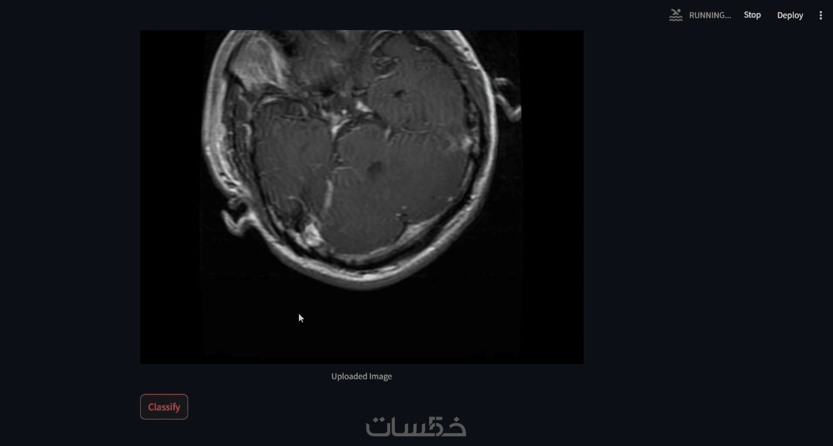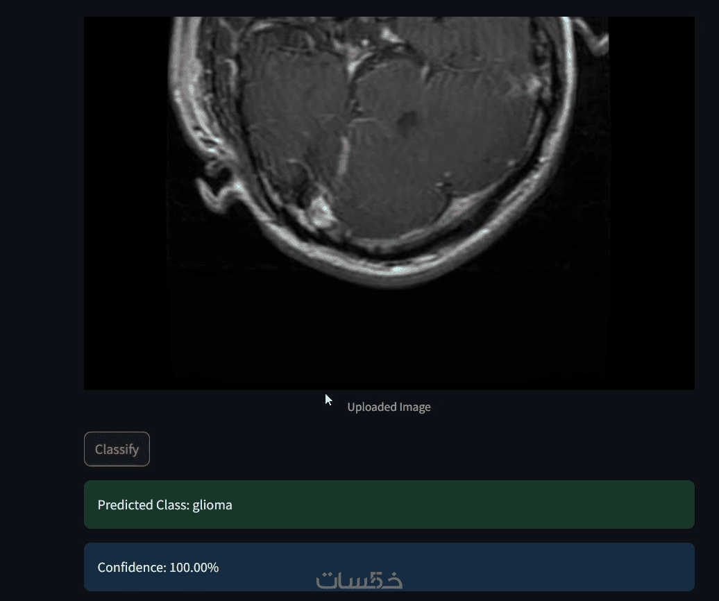 لا يتوقف المشروع عند الكود البرمجي فقط، بل ستحصل على تطبيق ويب تفاعلي سهل الاستخدام. يتيح لك رفع صور الرنين المغناطيسي مباشرة من جهازك ومعاينة النتيجة فوراً على المتصفح بضغوطات بسيطة.