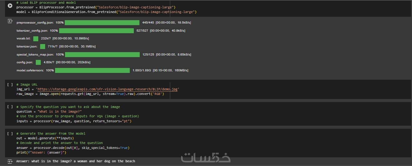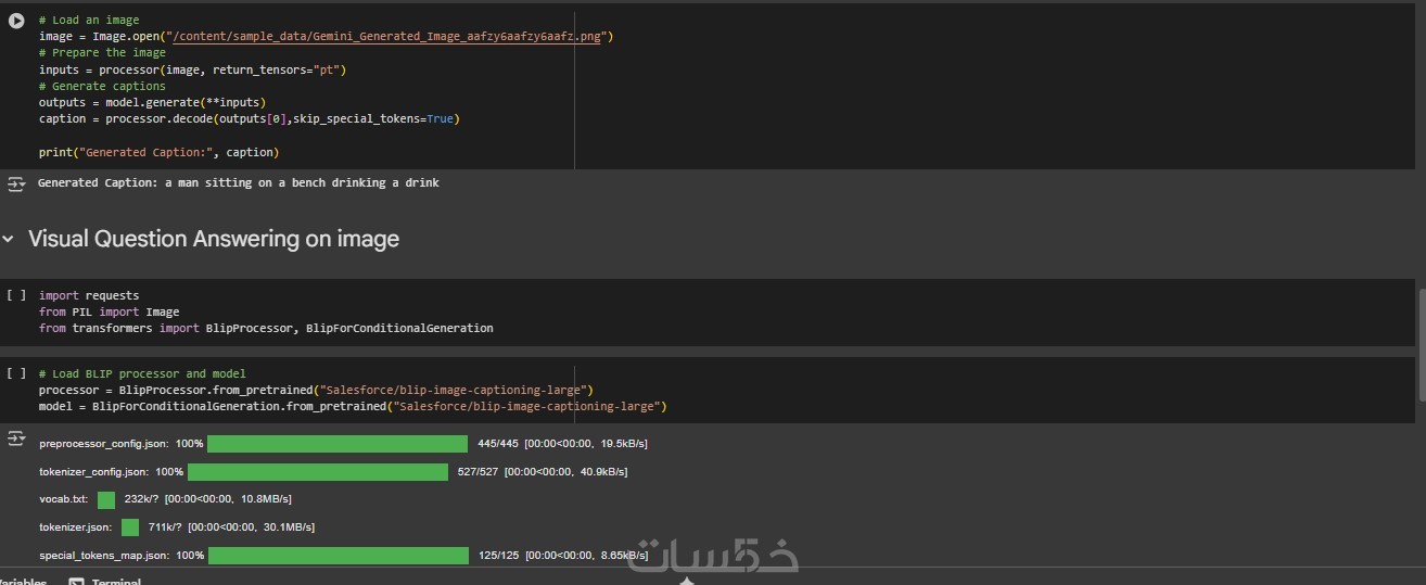 سأقوم بتسليمك كود بايثون من إعدادي يعتمد على مكتبة مفتوحة المصدر (BLIP) قمت بتهيئته وتخصيصه ليعمل بسهولة على جهازك مع شرح كامل خطوة بخطوة للتشغيل.