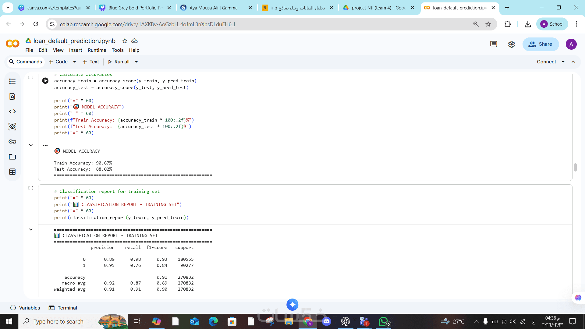 تقييم النموذج باستخدام مقاييس الأداء المناسبة (Accuracy / F1-score / RMSE حسب نوع المشكلة).