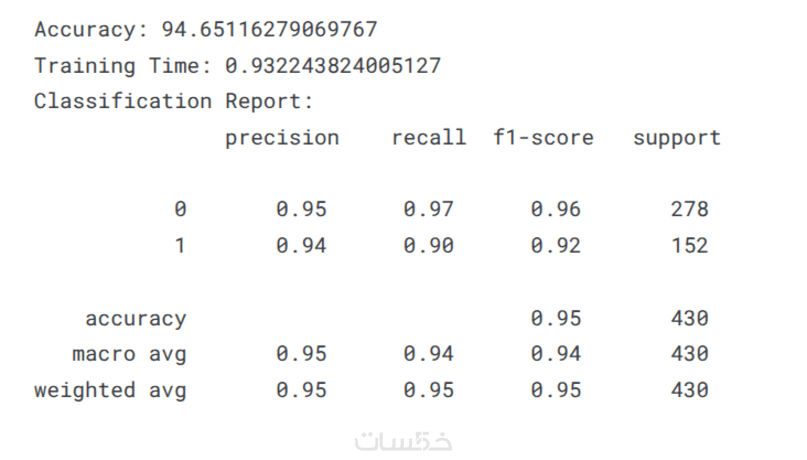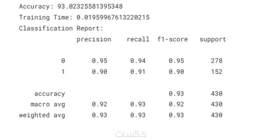 إعداد تقرير يوضح أداء النموذج والمقاييس المستخدمة