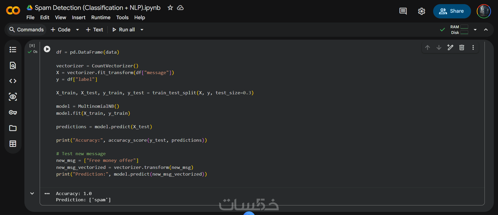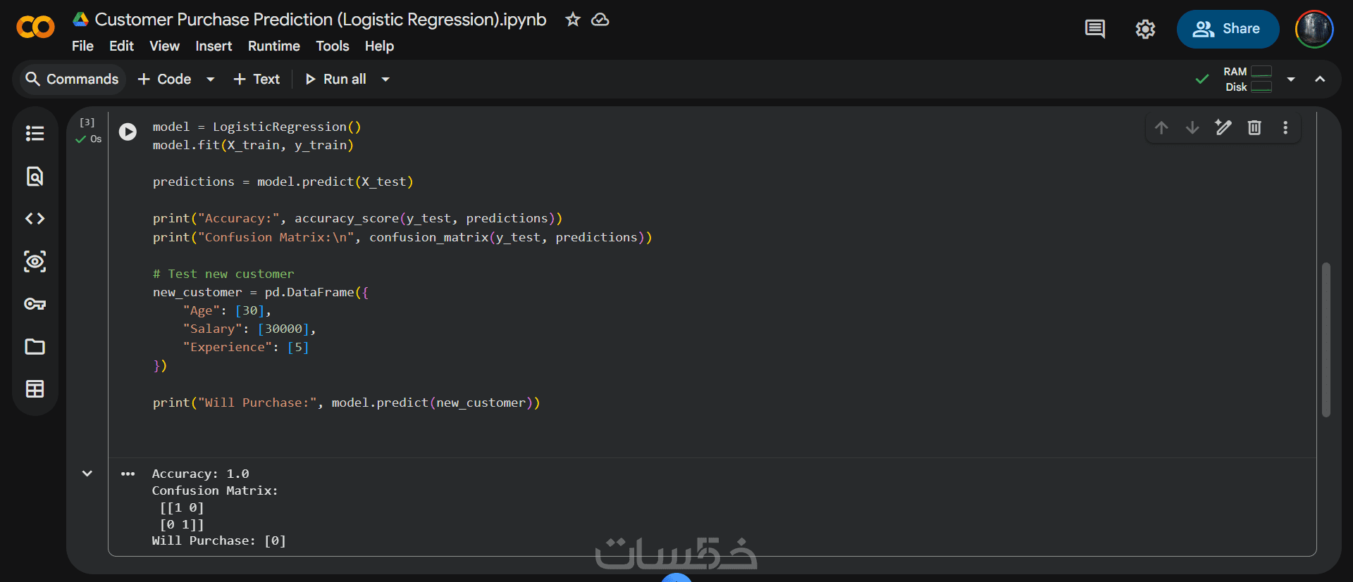 أقدّم لك نموذج Machine Learning كامل جاهز للتشغيل مباشرة على بياناتك.