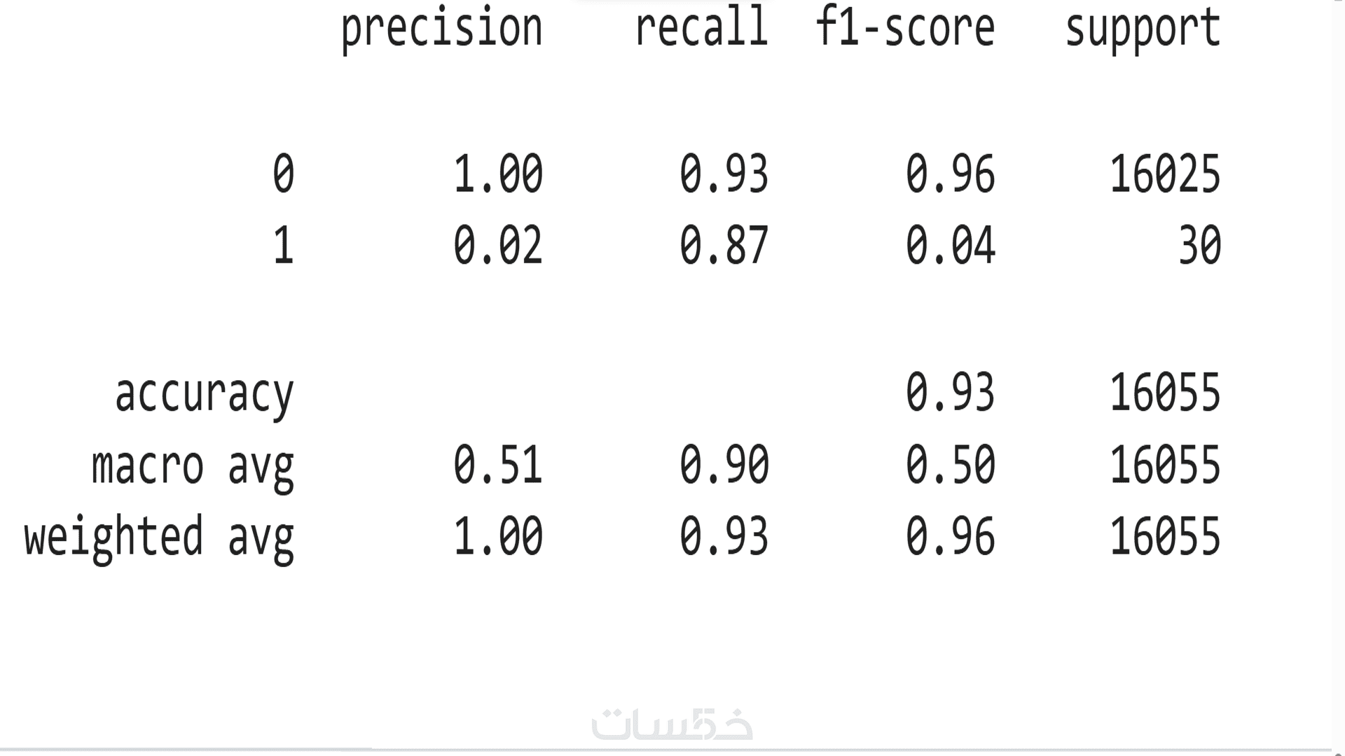 تقرير يوضح أداء النموذج باستخدام Precision و Recall و F1-Score