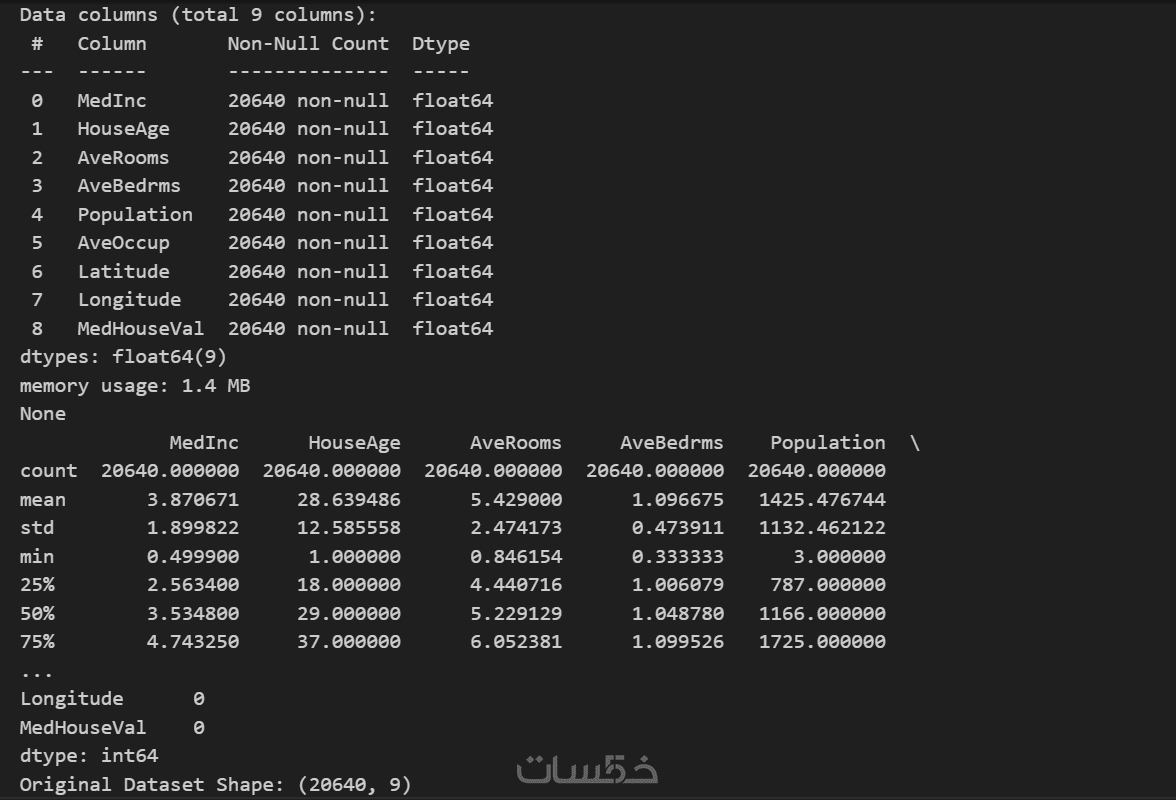 معالجة القيم المفقودة، إزالة البيانات غير الضرورية، وتحويل البيانات لتكون مناسبة للتدريب.