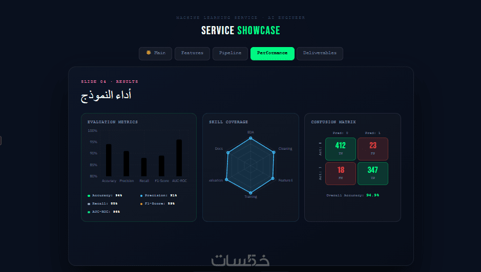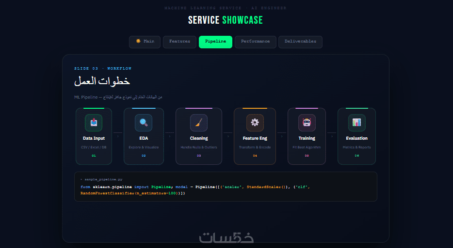 أقوم بتحويل بياناتك إلى نموذج ذكي قابل للاستخدام الفعلي من خلال تحليل البيانات، تنظيفها، واختيار أفضل الخوارزميات المناسبة للمشكلة. يتم تسليم المشروع بكود منظم وموثق ليسهل تشغيله وتطويره مستقبلاً.