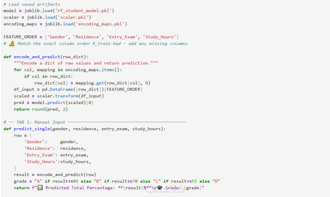 إضافه واجهه تفاعليه (GUI) بإستخدام Gradio, يستطيع المستخدم ادخال البيانات يدويا او رفع ملف للبيانات