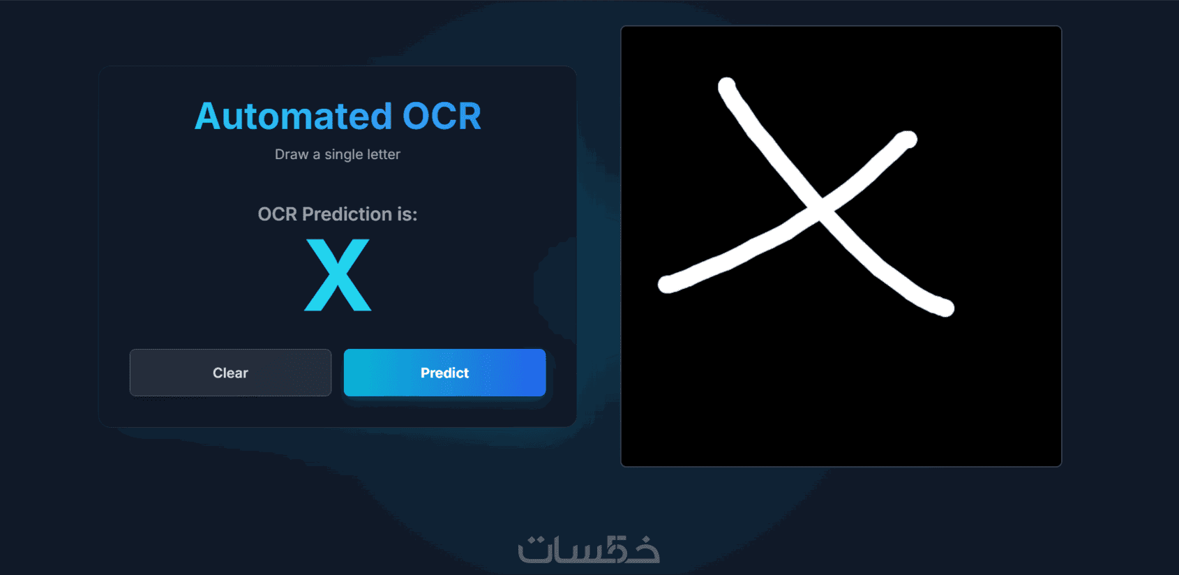 ستستلم صفحة الfront-end الخاصه بكتابة الاحرف حتي تستطيع استخدام المودل بشكل لحظي حيث يمكنك رسم الحرف و يقوم المودل بتوقع هذا الحرف حسب البيانات و الصور التي قام بالتدرب عليها