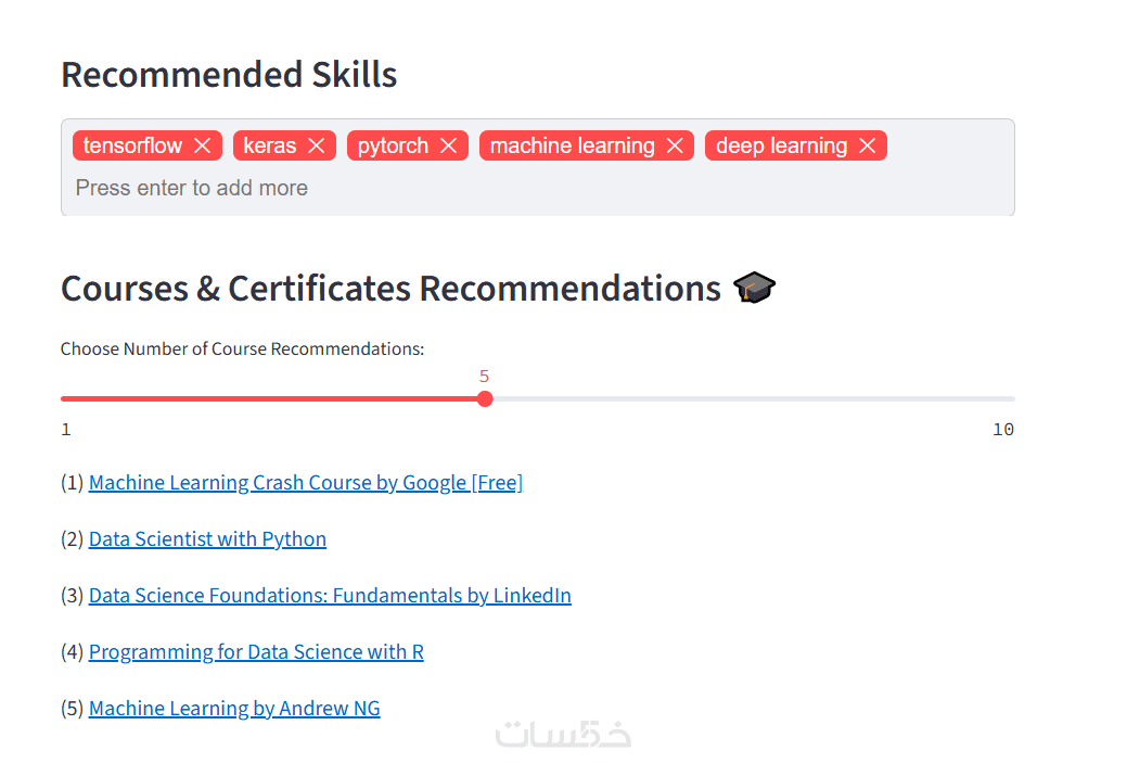 صفحة التوصيات (المهارات المقترحة + الدورات المناسبة)
