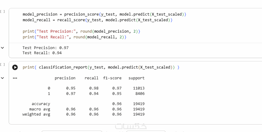 بعد ذلك يتم تقييم النموذج باستخدام المقاييس المناسبة مثل: