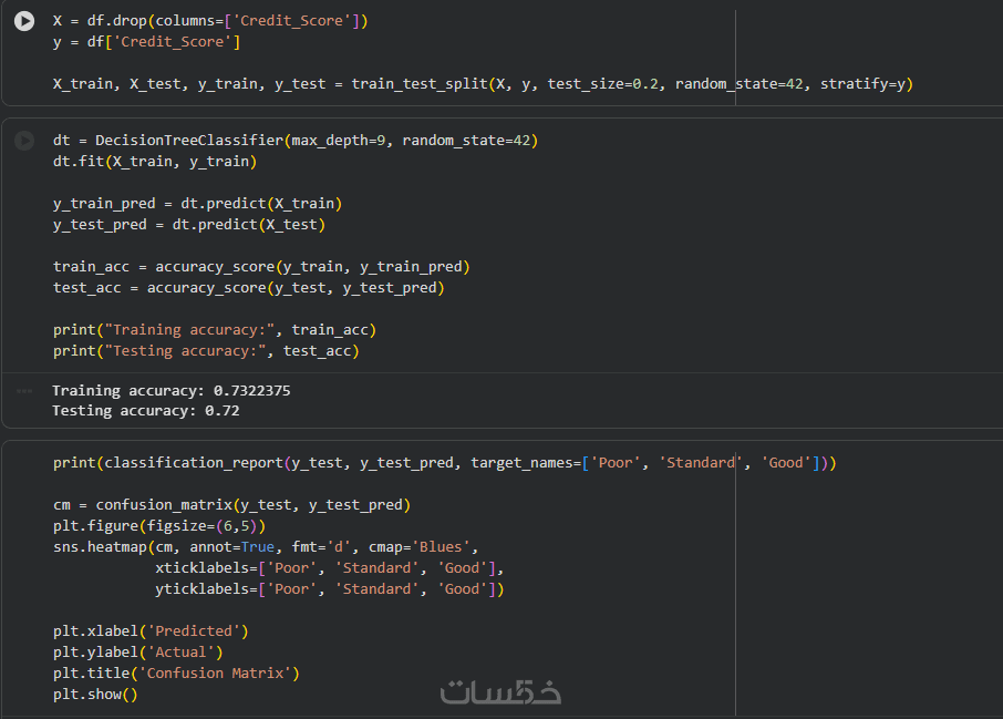 لا أعتمد على خوارزمية واحدة فقط. أقوم بتجربة عدة خوارزميات مختلفة (مثل Logistic Regression، Decision Tree، Random Forest، SVM) وأختار الأفضل بناءً على أدائها مع بياناتك.
