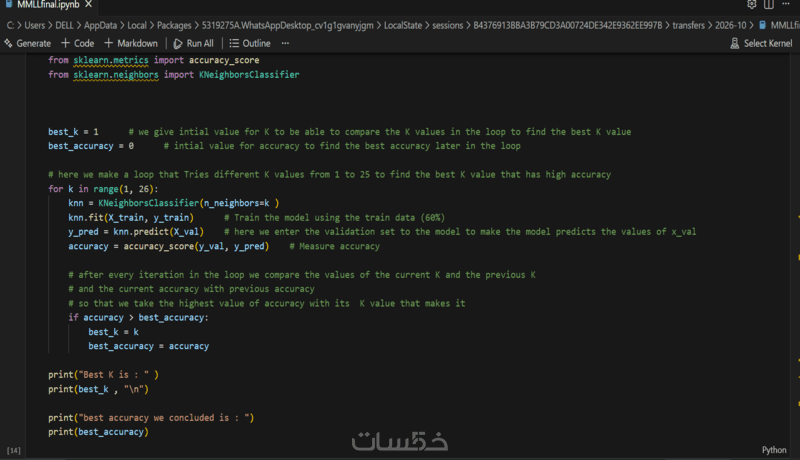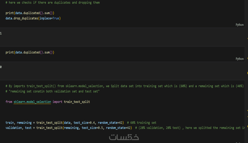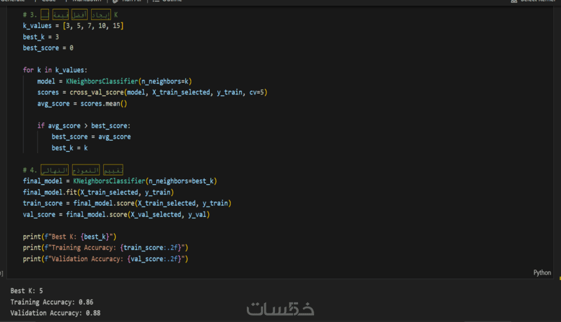 كود Python منظم وواضح لبناء وتدريب النموذج، سهل القراءة والتعديل ويمكنك تشغيله مباشرة على بياناتك.