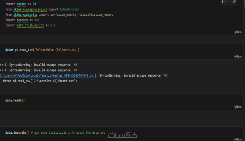 نعتمد أدوات قوية مثل Pandas وScikit-learn. الخدمة مثالية للمشاريع الجامعية، التنبؤ بالنتائج، وتطبيقات الذكاء الاصطناعي.