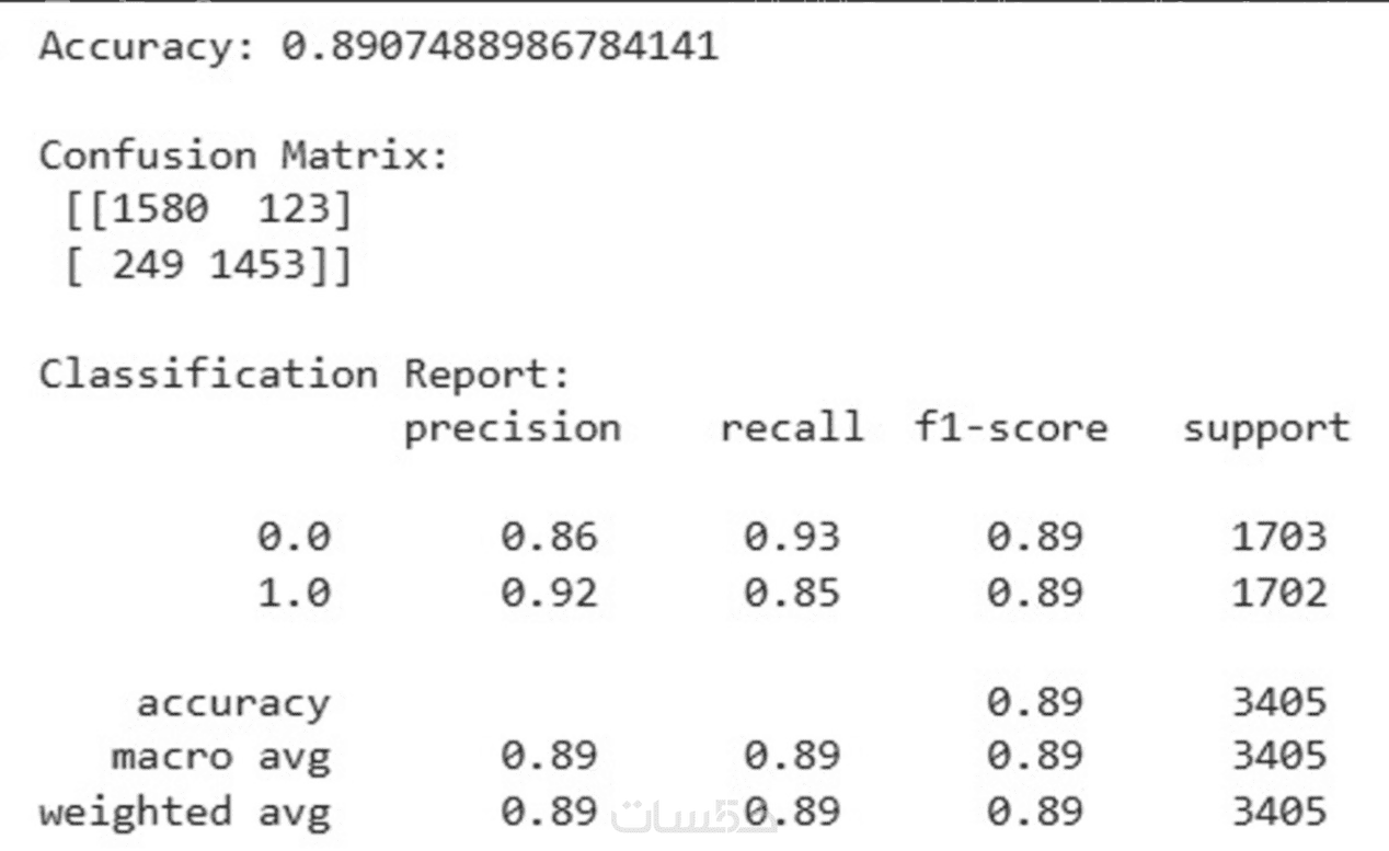 تقرير بسيط يوضح أداء النموذج ومقاييس التقييم