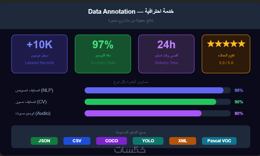 أقدّم خدمة Data Annotation / Data Labeling لعدد 1000 صف بدقة عالية لتجهيز البيانات المستخدمة في تدريب نماذج الذكاء الاصطناعي وتعلّم الآلة.