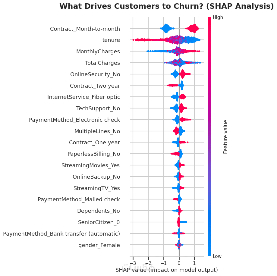 ملف منسق يحتوي على ملخص دقيق للنتائج، يوضح أهم 3 عوامل تسبب تسرب عملائك بناءً على التحليل البرمجي للبيانات.