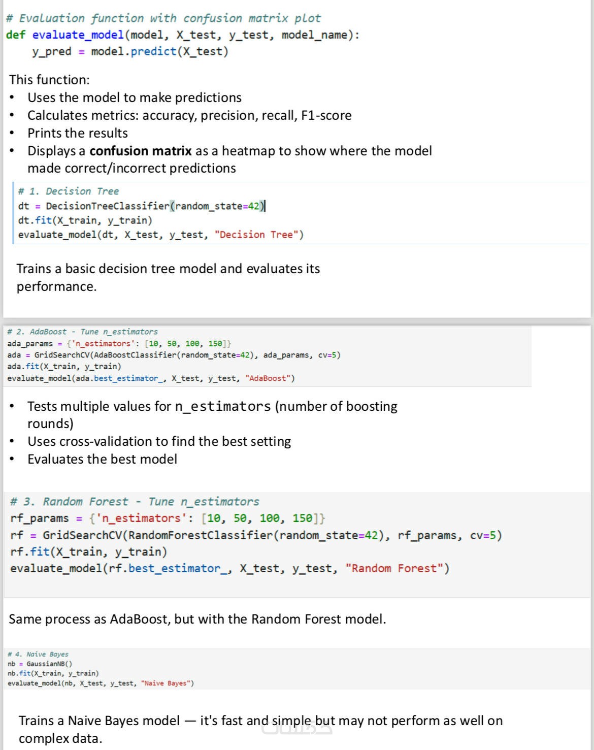أقدم لك خدمة تصميم وتدريب نماذج التعلم الآلي (Machine Learning) بدءًا من تحليل البيانات وحتى تسليم نموذج جاهز للاستخدام. يمكنني بناء أي نوع من النماذج لتصنيف البيانات، مثل Naive Bayes، Decision Tree، Random Forest، AdaBoost، وغيرها، مع تقييم دقة النموذج وتحليل الأداء لاختيار أفضل الحلول لمشروعك. سواء كنت تحتاج إلى التنبؤ بالبيانات، تصنيف المنتجات، أو أي مهمة تعتمد على الذكاء الاصطناعي، سأقوم بإعداد النموذج المناسب وتقديم النتائج بشكل واضح وسهل الاستخدام