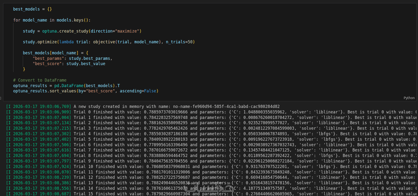 ضبط المعلمات الفائقة بإستخدام Optuna لتحسين دقة النموذج الاساسي المذكور لضمان أفضل أداء ممكن