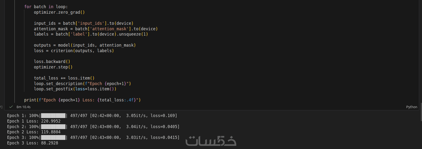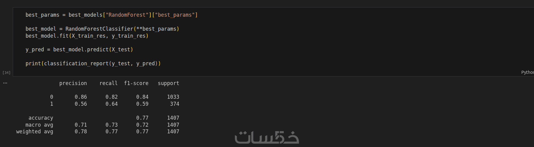 بصيغة ipynb أو py يحتوي على مراحل معالجة البيانات، التدريب، والتقييم.