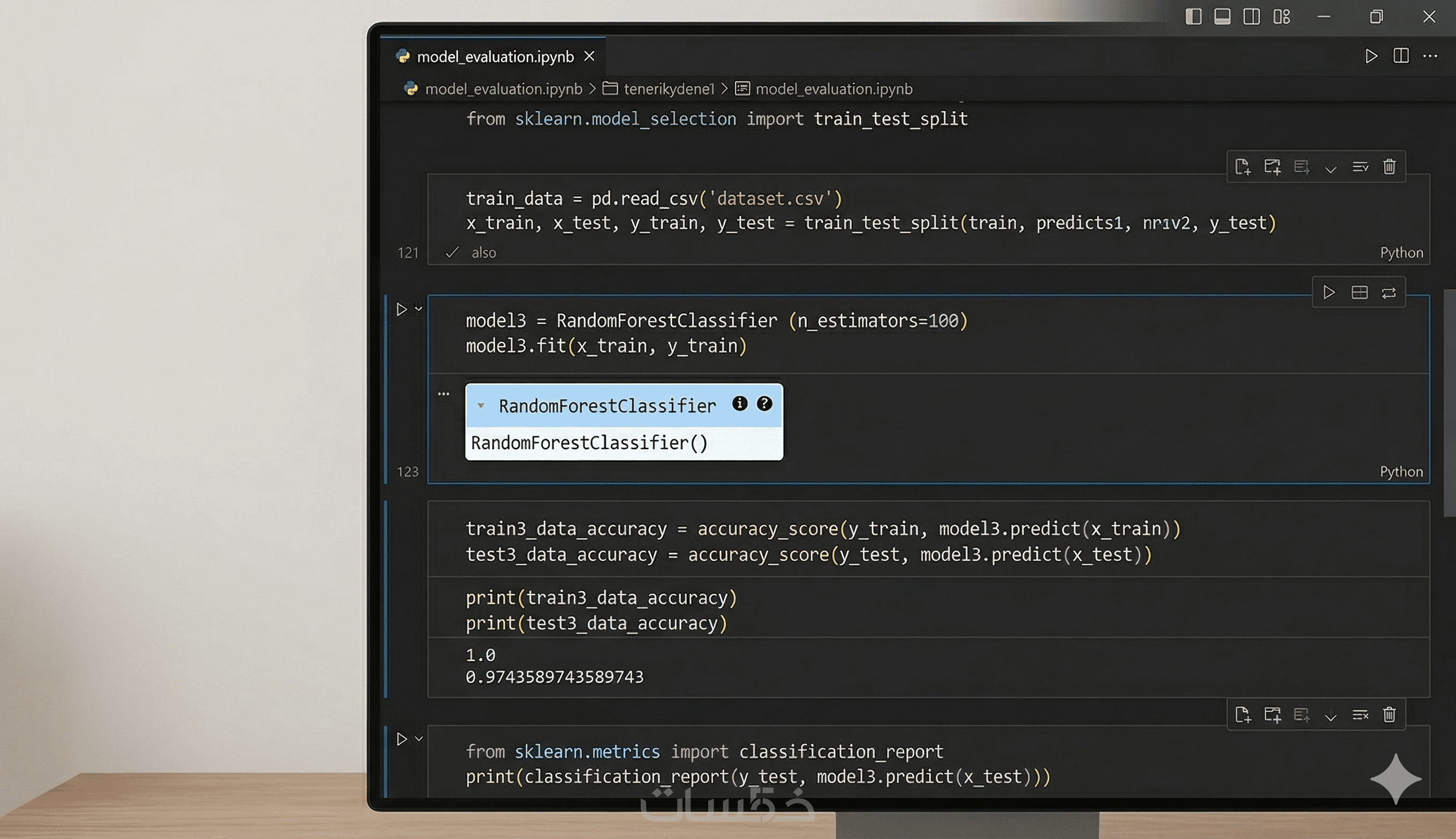 سيتم تقييم النموذج باستخدام مقاييس مناسبة مثل Accuracy وF1-score وConfusion Matrix أو RMSE حسب الحالة، مع تقديم شرح واضح ومبسط للنتائج.